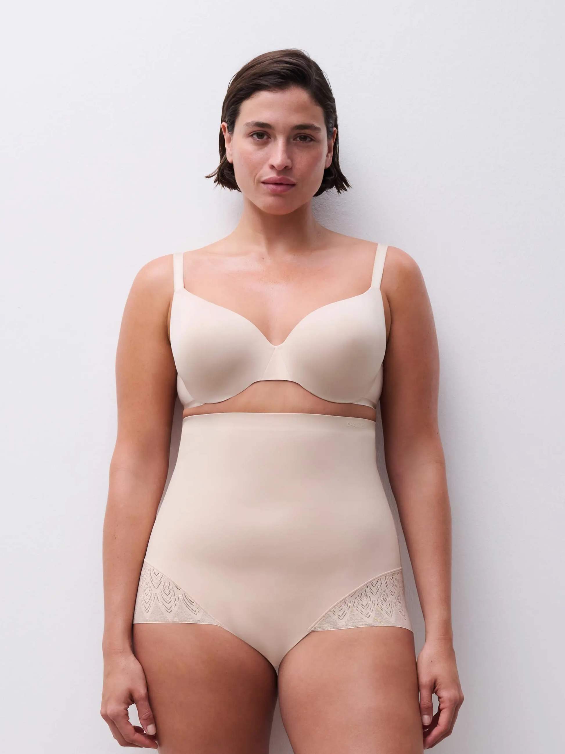 Découvrez la culotte taille très haute de Chantelle. Légèrement sculptante, invisible et confortable en maille et dentelle féminine.