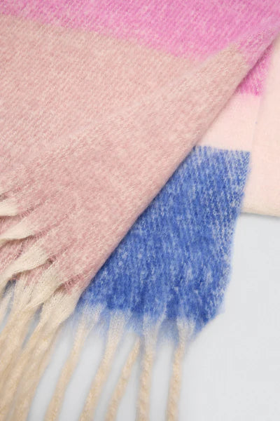 Découvrez l'écharpe style pashmina à larges rayures dans un coloris au choix vert ou rose. Son design enveloppant et sa texture moelleuse en font un incontournable de l'hiver.